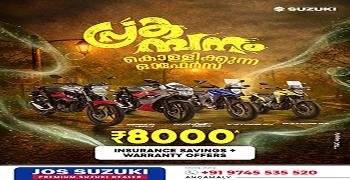 Established in 2020, JOS SUZUKI, Angamaly is one of the most well-known and trusted Suzuki Bike Showroom in Ernakulam- Angamaly. JOS SUZUKI is an authorised Suzuki Motorcycle Dealer with a state-of-the-art showroom where you can check out the new Avenis,take it out for a test ride, and book your dream ride. On our website, you can explore the entire range of two-wheelers by Suzuki Motorcycles. You can also find out the ex-showroom price of different variants, calculate EMI, get a callback, and even book a suitable time slot for a test ride. Check out your favourite Suzuki motorcycles and scooters conveniently, with the easy-to-use filters to simplify your search. JOS SUZUKI offers the entire range of Suzuki Motorcycles, Big Bikes, and Scooters in the Avenis from JOS SUZUKI,check out its features, take it for a ride, get a quote, and book your favourite bike from the entire range of Suzuki motorcycles and scooters in. At JOS SUZUKI, you can also avail two-wheeler finance to buy your favourite ride.